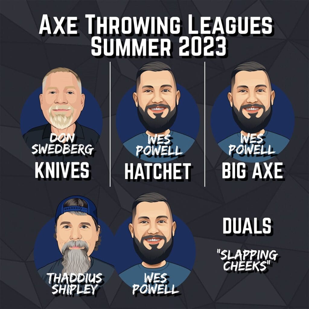 We hold league nights twice a week. Choose one (or both). We encourage you to sign up for multiple leagues! House axes and knives are provided. You may bring your own WATL/WKTL-approved blades.